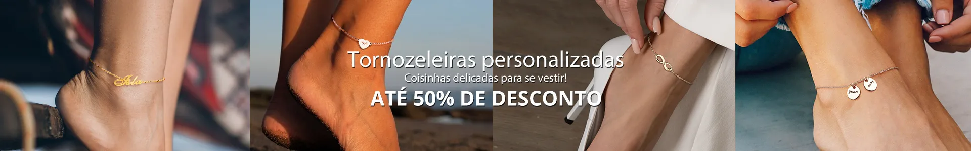 44% OFFTornozeleira com Nome Personalizado Prata Banhado a Ouro 14k -