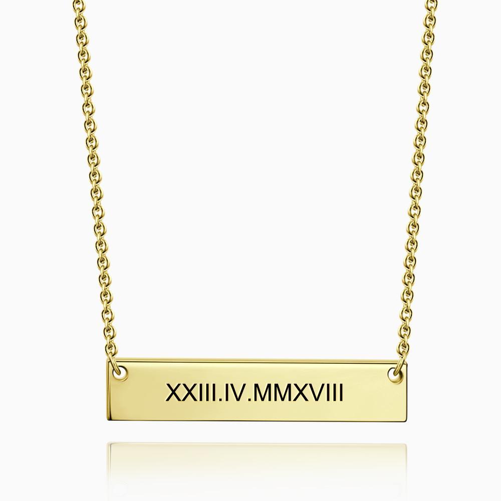 21% OFFNumeral Romano Colar Gravável Personalizado de Barra Banhado 14K Dourado Prata 925 Genuíno -