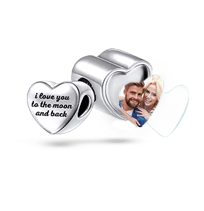 50% OFFBerloque Gravável de Coração com Foto Banhado a Platina -
