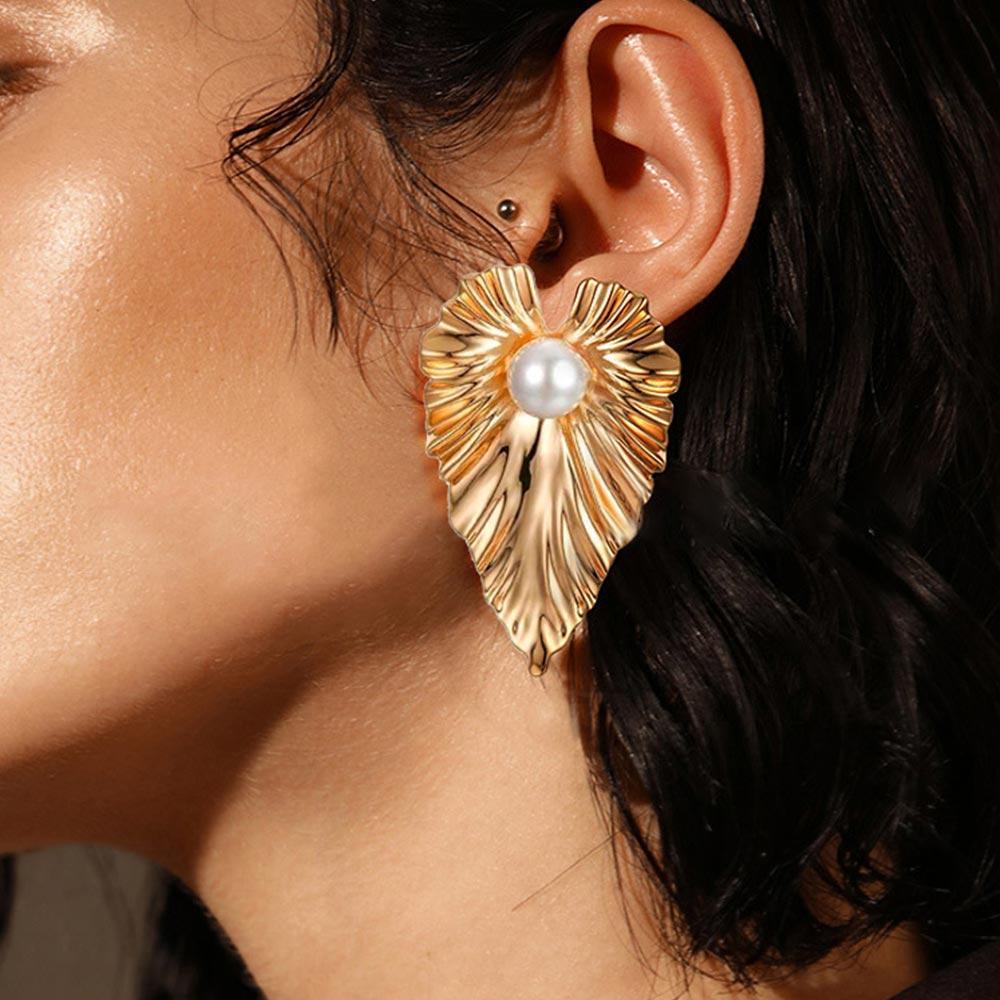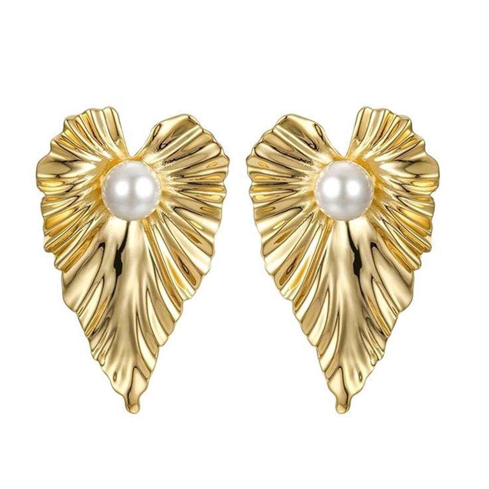 55% OFFBrincos de Pétalas em Forma de Coração Cobre Banhada a Ouro -