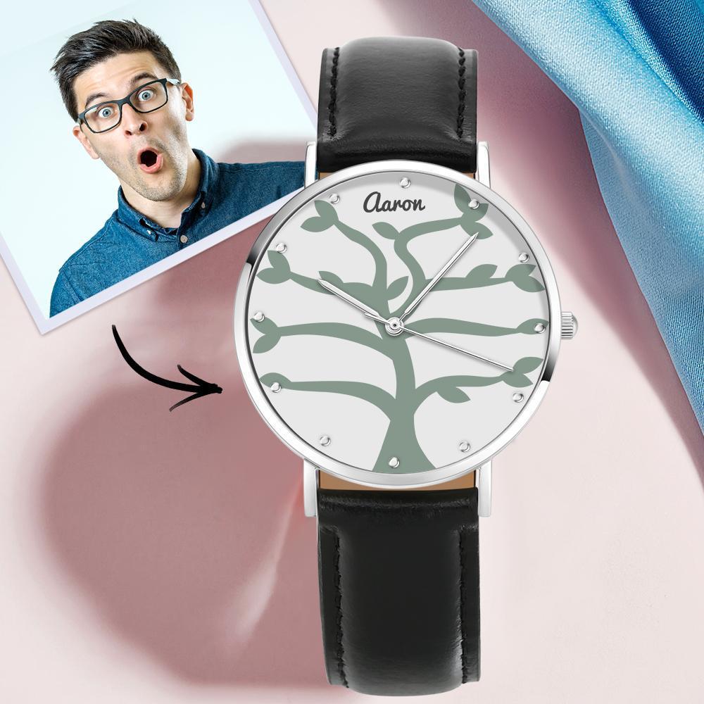 41% OFFRelógio Com Nome Personalizado Pulseira De Couro Preta De 40 Mm Melhores Presentes (1-9 Nomes)