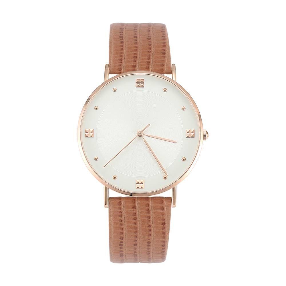68% OFFRelógio com Indicador Casual com Pulseira de Couro de Moda Quartzo Castanão - Mulheres -