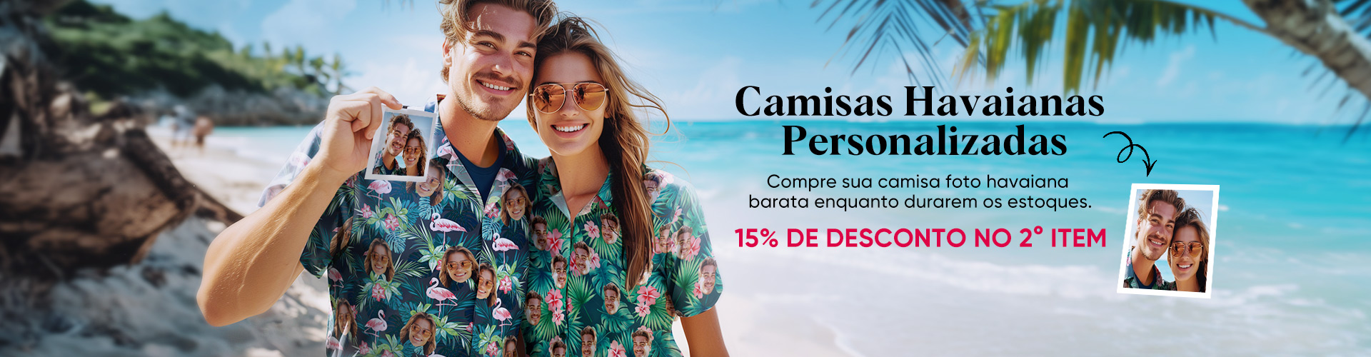 50% OFFCamisa Havaiana com Rosto Personalizado Roupa de Casal Vibe Vocação Camisa Havaiana Palmeiras Coloridas -
