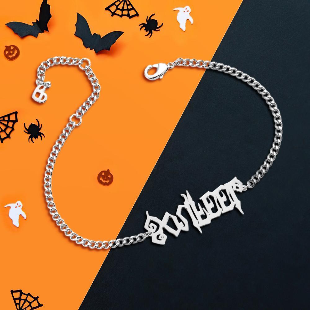 50% OFFPulseira com Nome Pulseira Personalizada Presentes de Halloween Design Especial Prata Banhada a Ouro 14k -