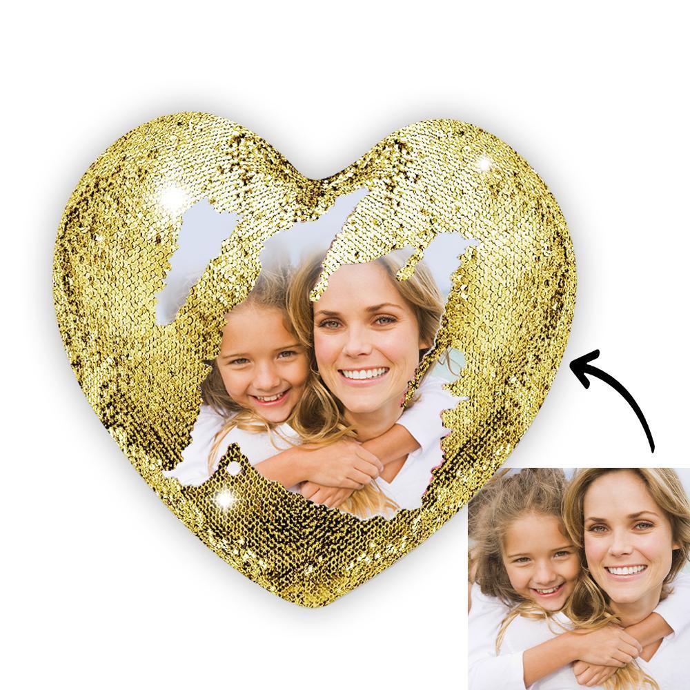 51% OFFTravesseiro Personalizado Mágico Com Foto Com Coração De Lantejoulas Ouro -