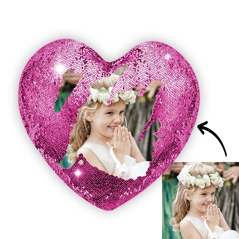 51% OFFTravesseiro Personalizado Mágico Com Foto Com Coração De Lantejoulas Branco -