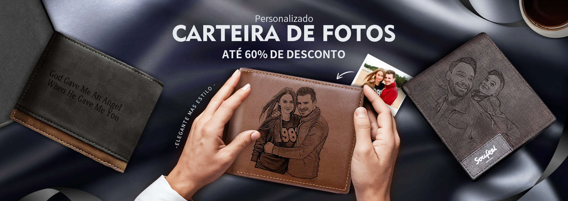 50% OFFPresentes Para O Dia Dos Pais - Carteira Masculina, Carteira Personalizada, Carteira Fotográfica Com Gravura Para O Pai -
