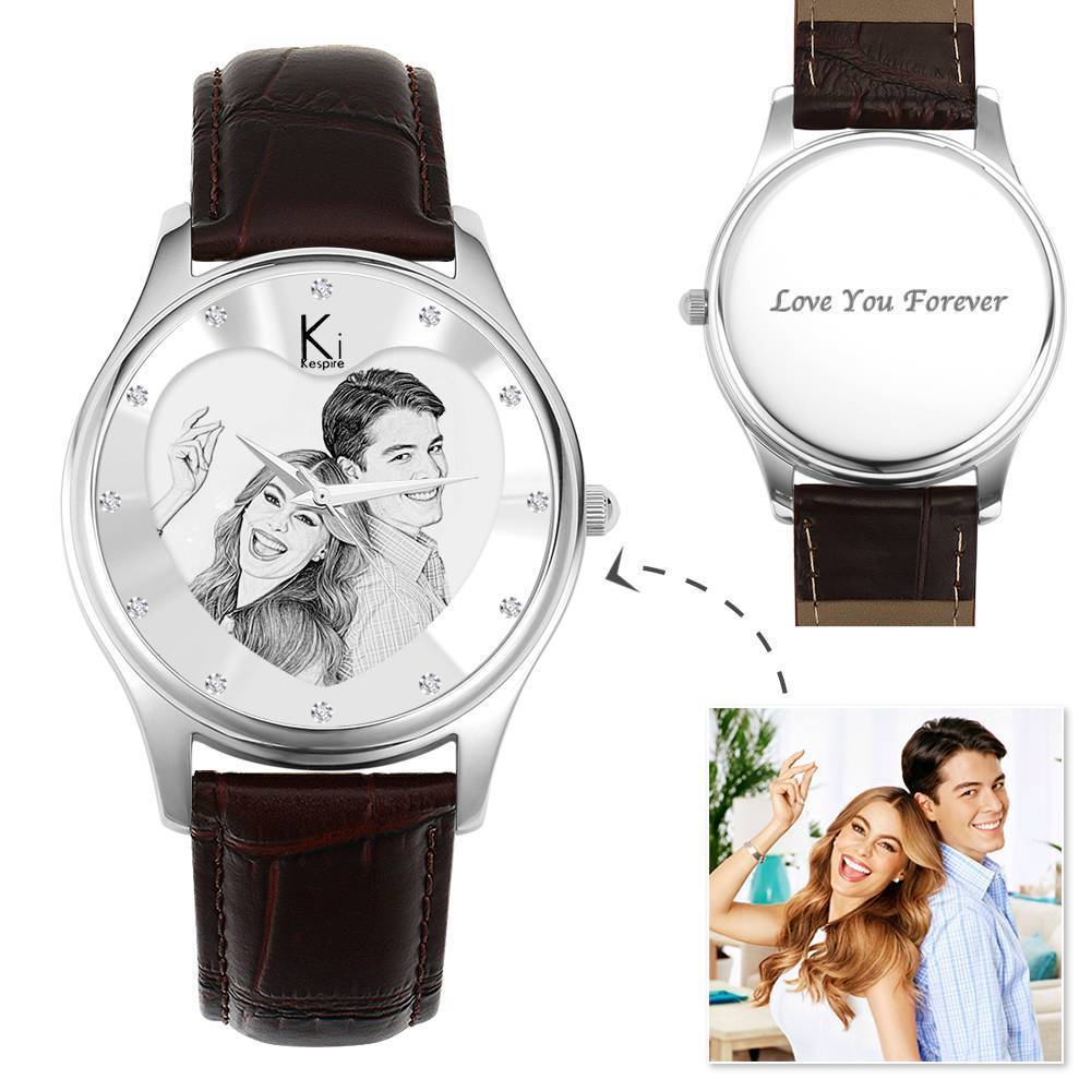 51% OFFMulher Relógio Gravável com Foto 40mm Pulseira de Couro Castanho - Esboço -
