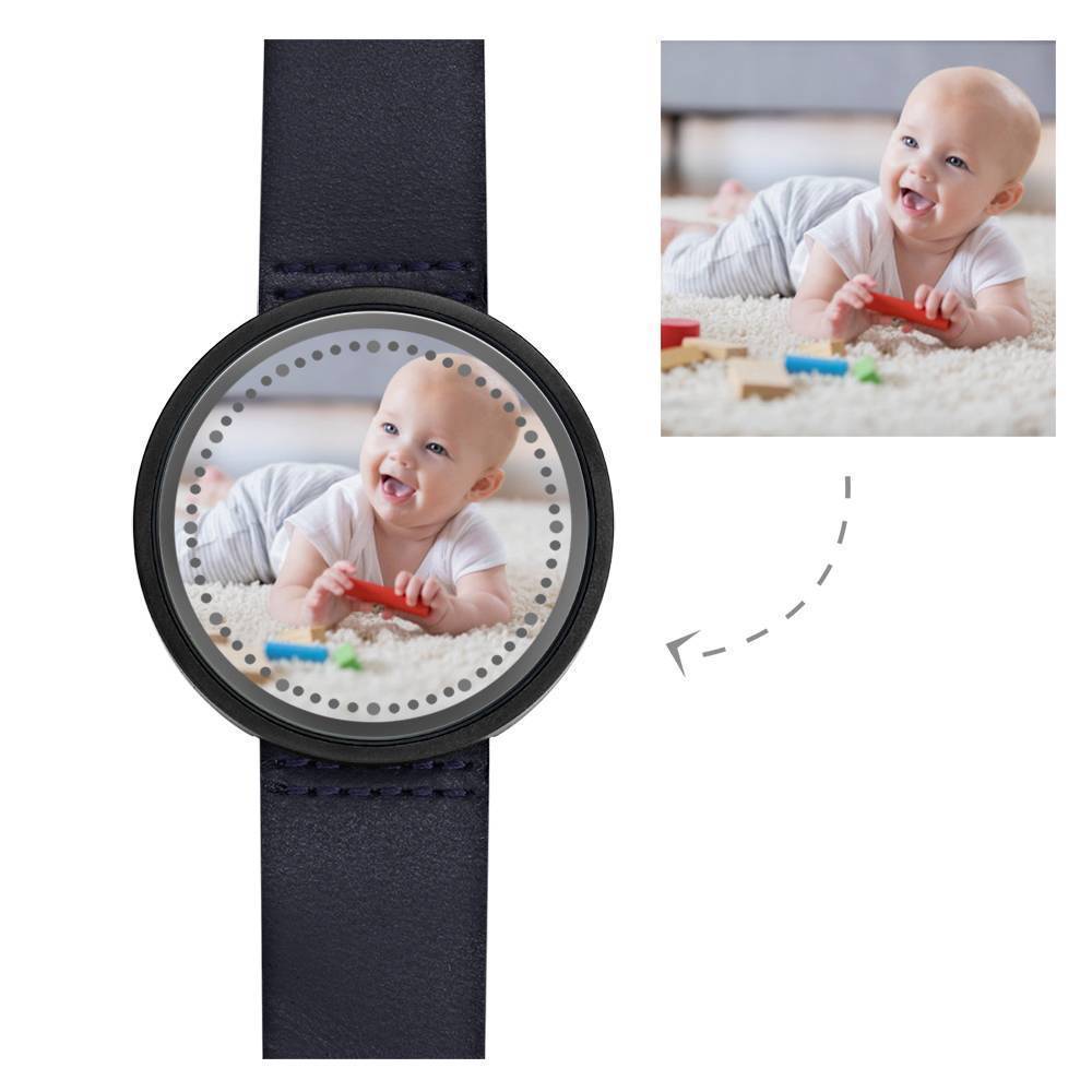 50% OFFRelógio Gravável Personalizada, Relógio Iluminado por Toque com Pulseira de Couro Azul Crianças Bonitas -