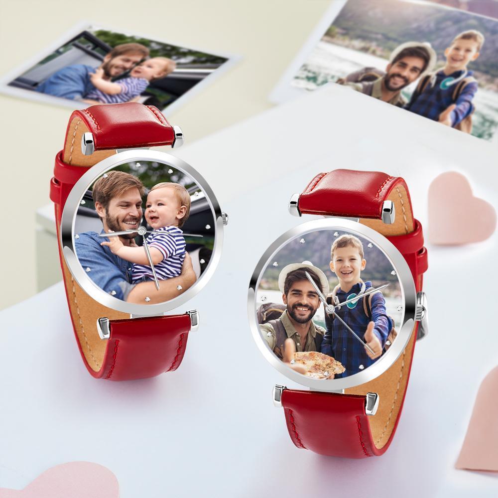 43% OFFRelógio Gravável com Foto de Pulseira de Couro Vermelho Presentes de Aniversario Masculino -