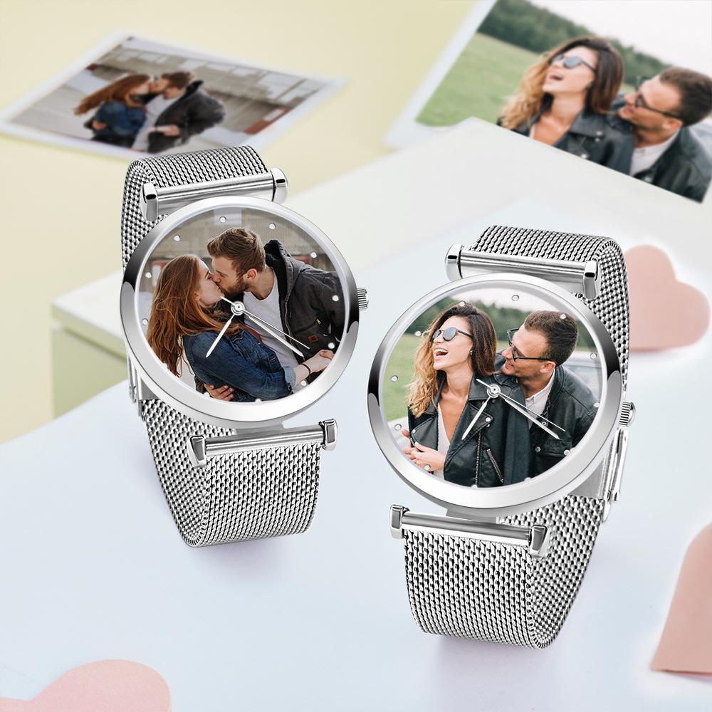 43% OFFRelógio Gravável com Foto Correia de Pulseira de Liga Prata 41mm Masculino -