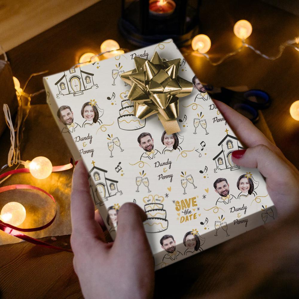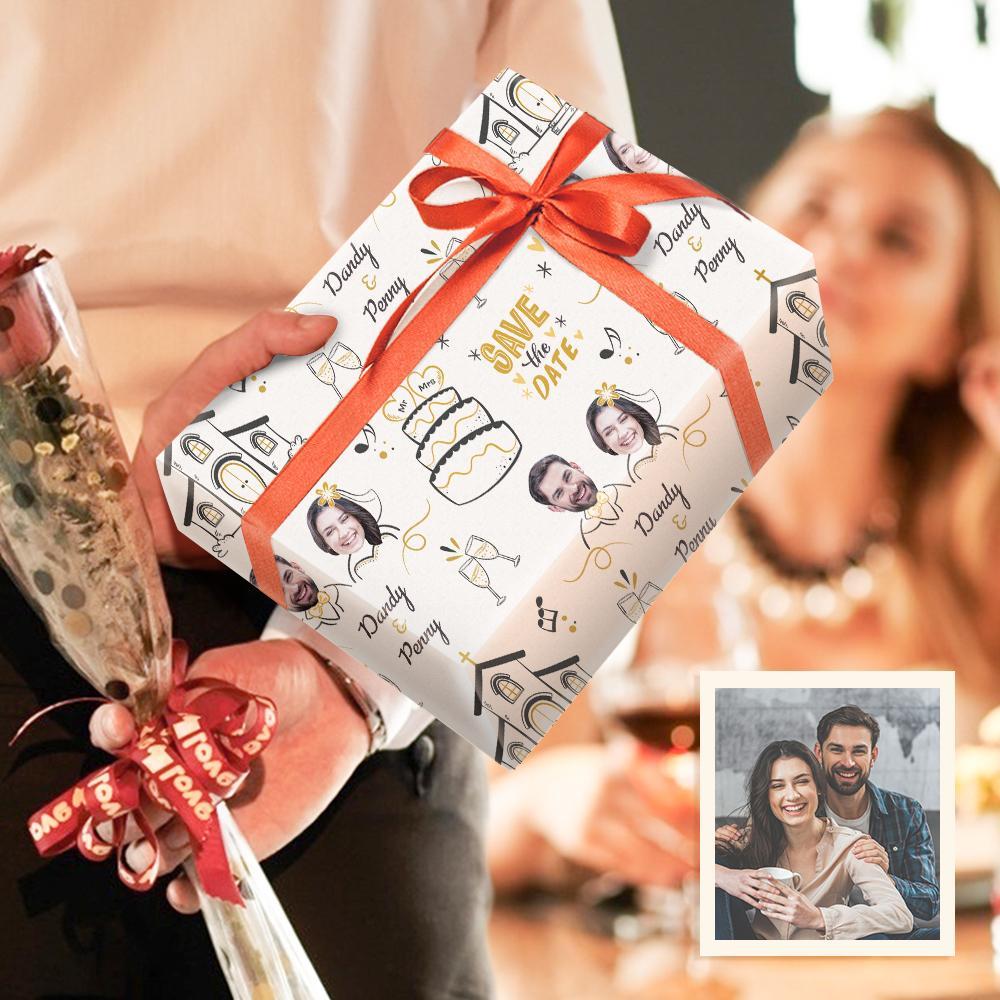 56% OFFPapel de embrulho com foto personalizada Presentes para casais Guarde a data -