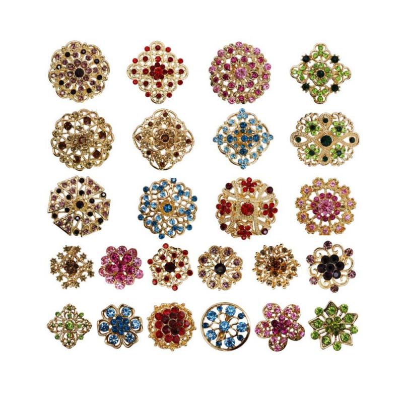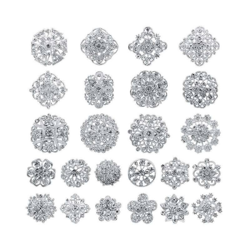 24 Peças Broches De Cristal Multicoloridos Prateados Buquê De Casamento Decoração Faça Você Mesmo
