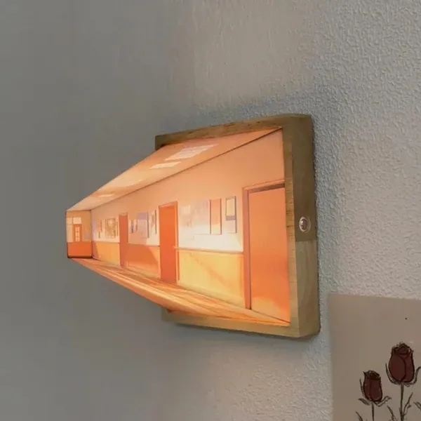 Este criativo candeeiro de parede com moldura de madeira transforma a sua sala de estar com a sua hipnotizante ilusão 3D. Parece diferente quando visto de diferentes ângulos, criando uma ilusão de ótica mágica. É como uma obra de arte moderna viva que adiciona um charme único a qualquer espaço. Perfeito para residências que procuram um design elegante de montagem na parede que não requer perfuração. A luz é fácil de instalar e seu brilho quente cria uma atmosfera aconchegante.