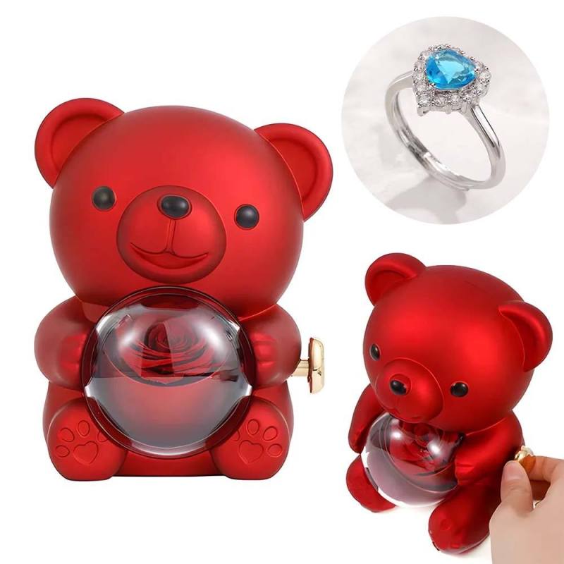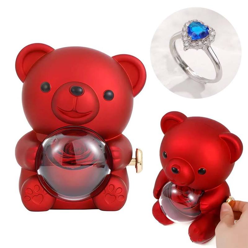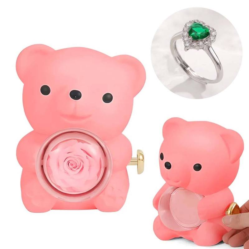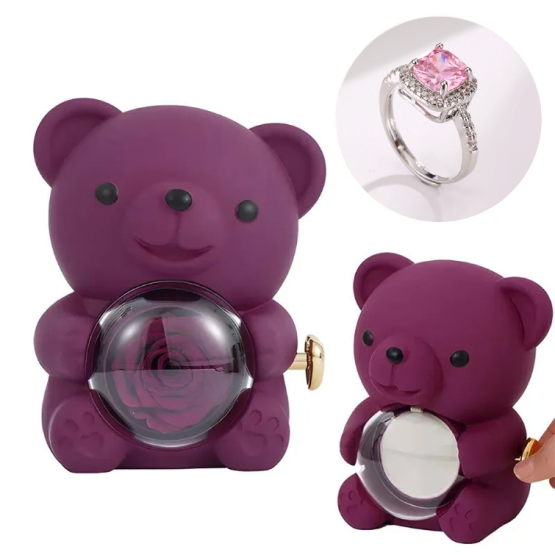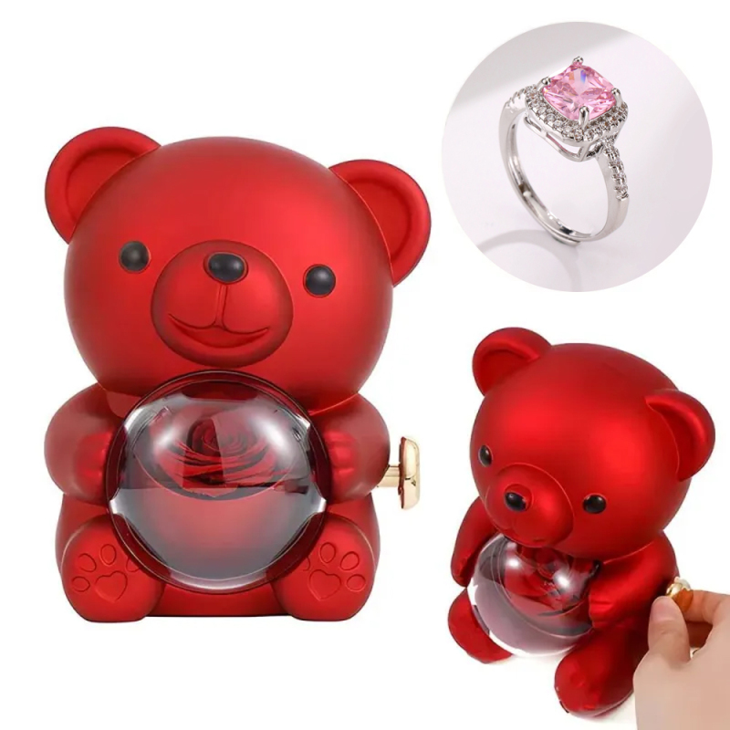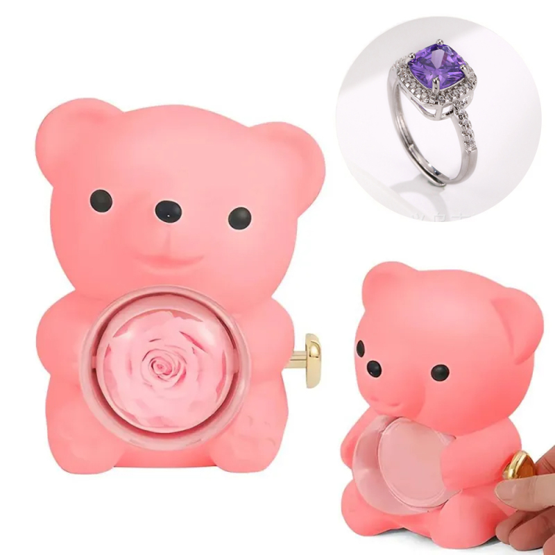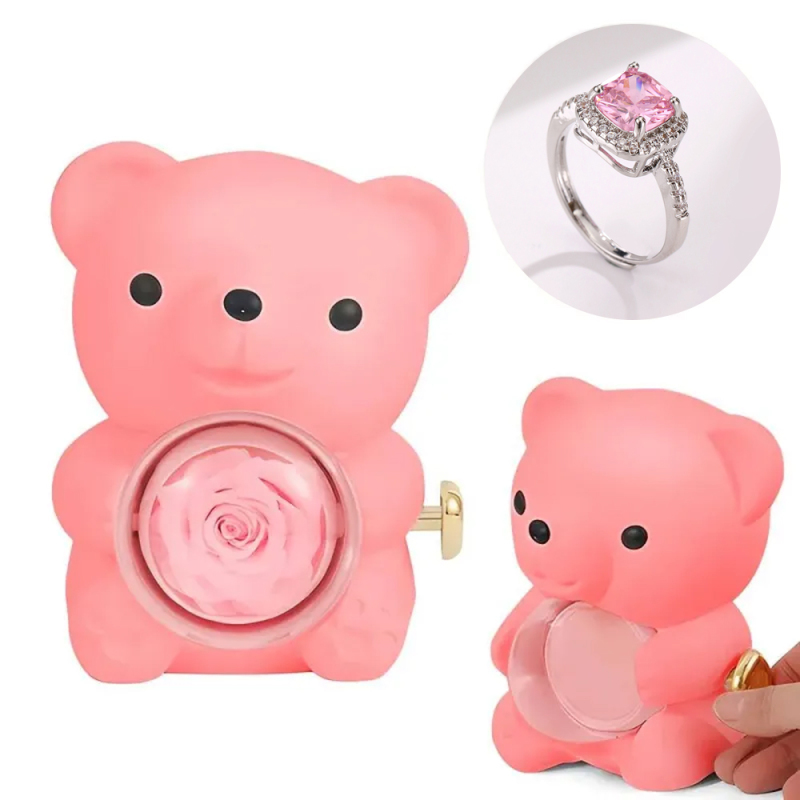 Anel De Amor Ajustável Para Casal Com Caixa De Presente De Urso Rosa Para Ela