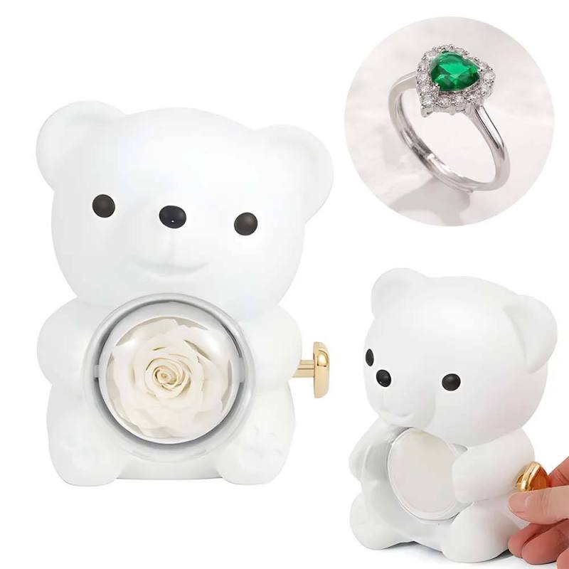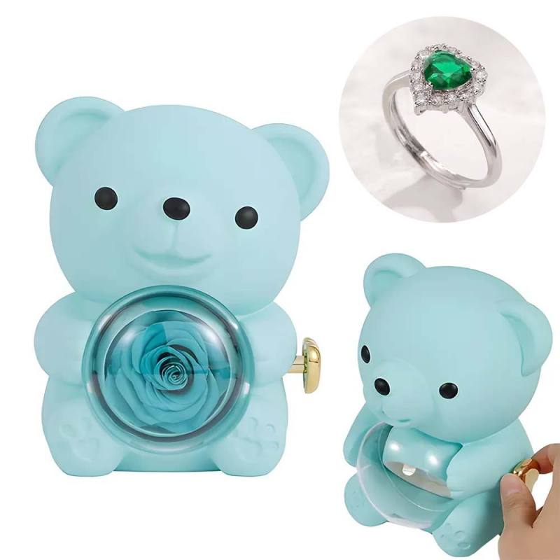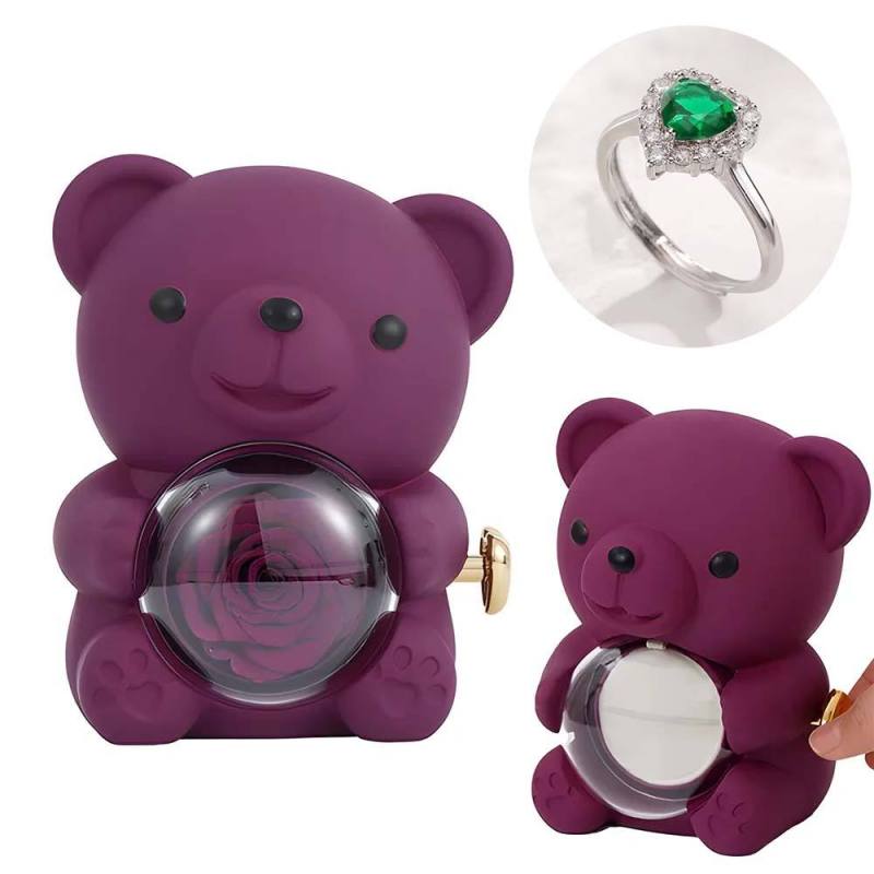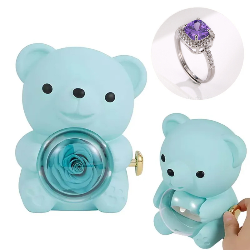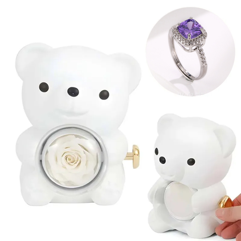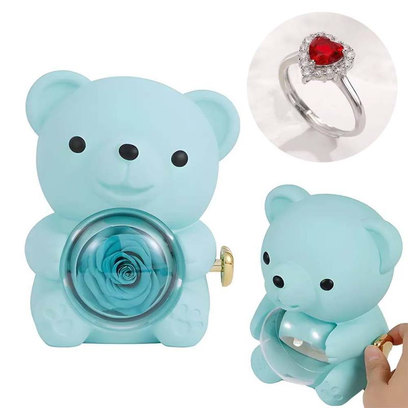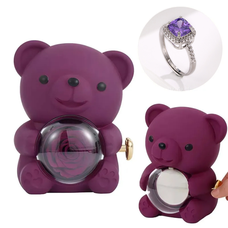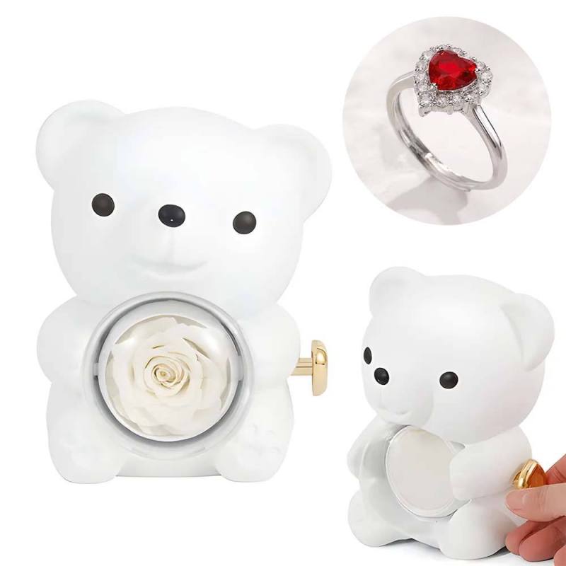 Anel De Amor Ajustável Para Casal Com Caixa De Presente De Urso Rosa Para Ela