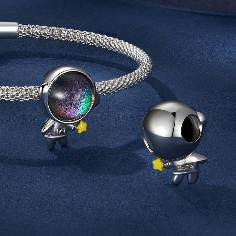 Amuleto de esmalte espacial astronauta prateado