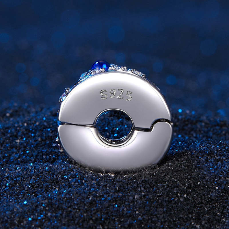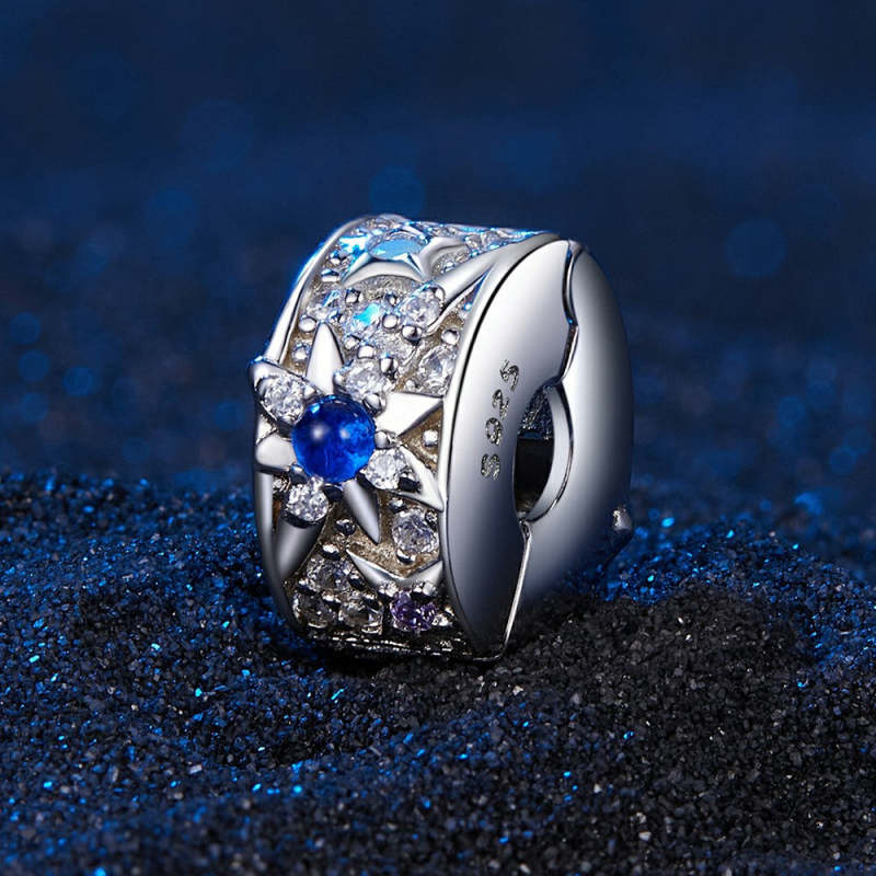 Charme espaçador com estrelas de diamante azul e pingente prateado