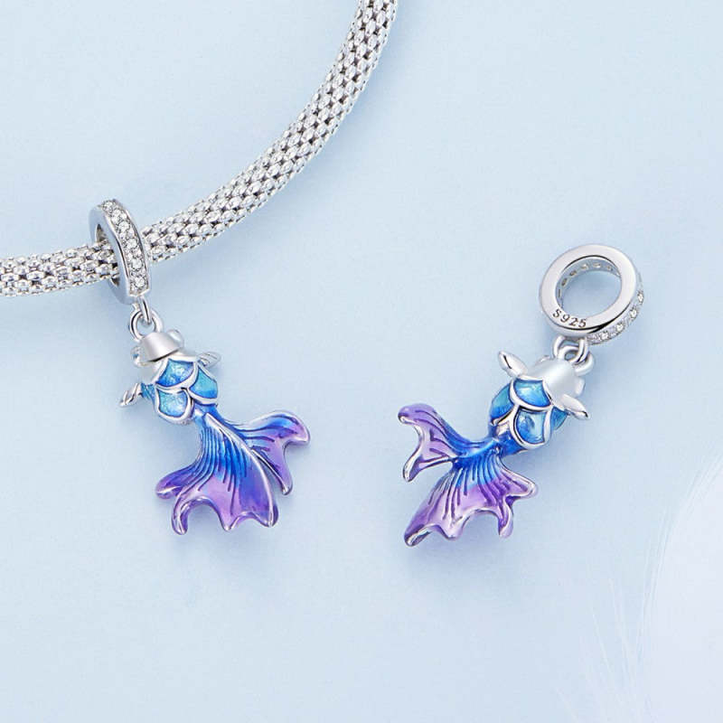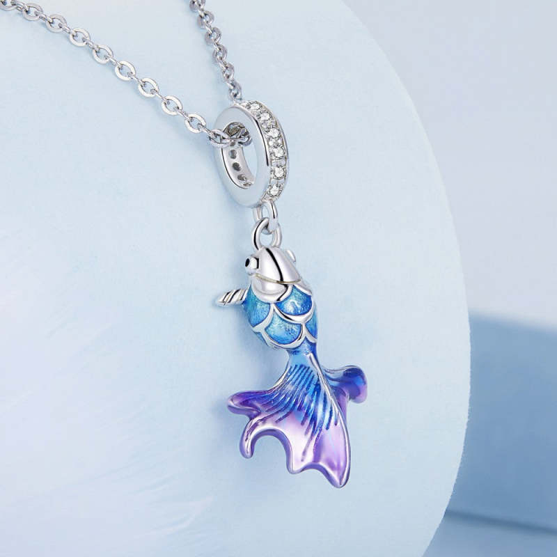 Pingente Pendurado Koi Azul Prateado