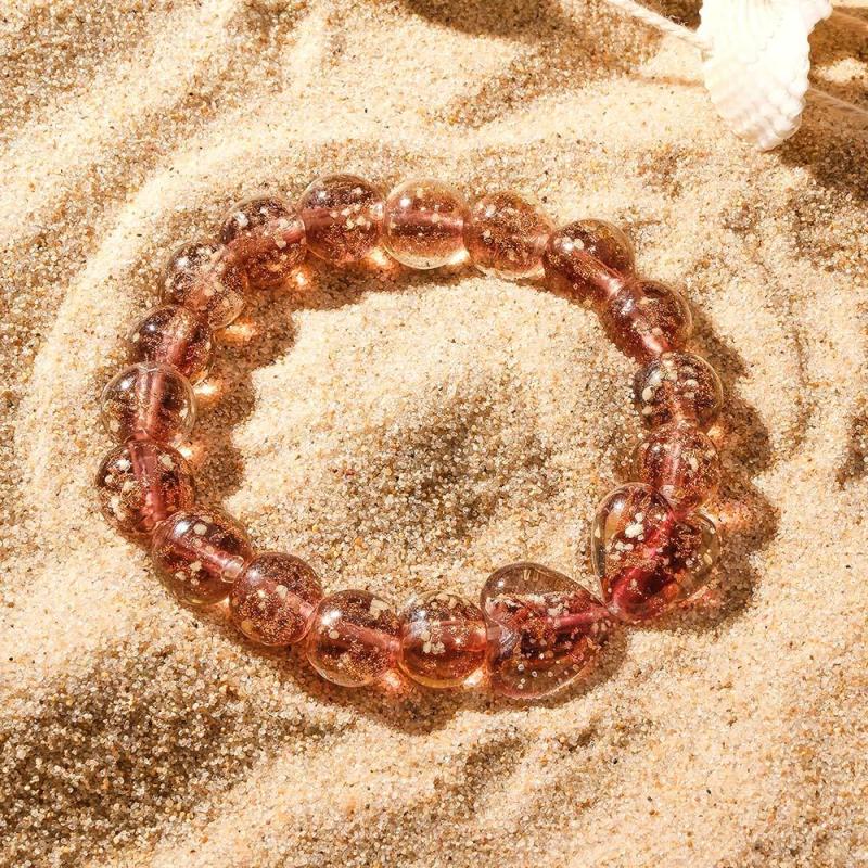 Pulseira De Contas Elásticas De Vidro Firefly De Coração A Coração Marrom Que Brilha No Escuro Pulseira Luminosa