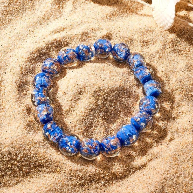 Pulseira De Contas Elásticas De Vidro Firefly Azul Cerúleo Que Brilha No Escuro Pulseira Luminosa