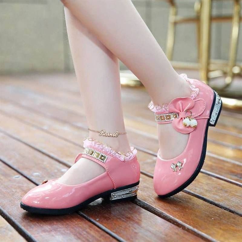 Infantil Tornozeleira com Nome Banhado a Ouro Rosa - Comprimento Ajustável