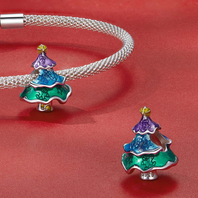 Presentes de Natal em Prata com Amuleto Esmaltado para Árvore de Natal