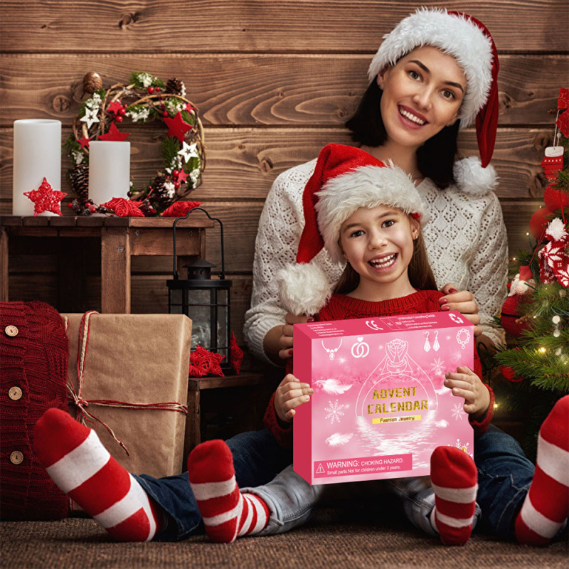 Calendário Do Advento Para Conjunto De Joias De Natal Caixa Anel Colar Brincos Conjunto De 24 Peças De Natal (Estilo Aleatório)