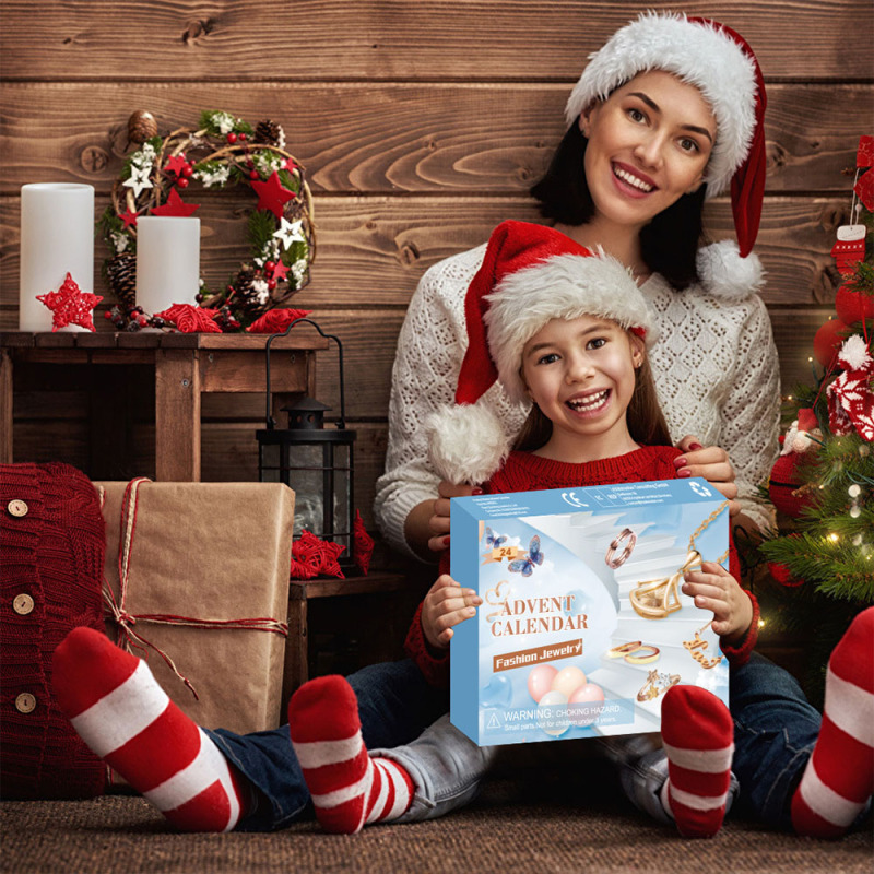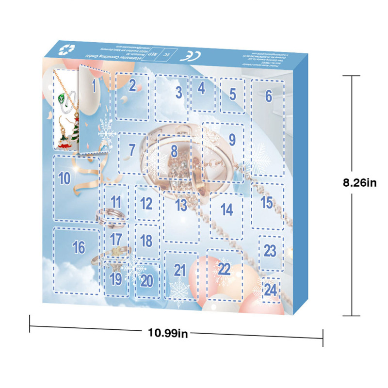 Calendário Do Advento Para Anel De Natal Colar Brincos Conjunto De Caixa De Joias Conjunto De 24 Peças De Natal (Estilo Aleatório)