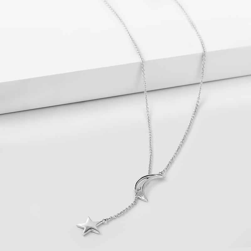 Crescente Lua e Estrela Colar Prata
