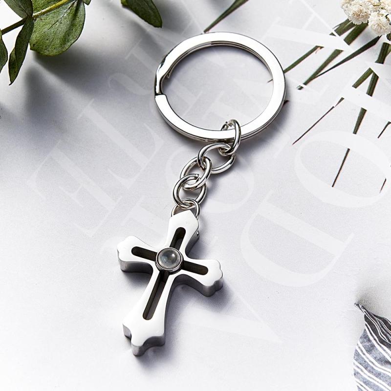 Chaveiro cruzado com foto dentro vale mais que mil palavras. Esta obra-prima de joalheria foi projetada em aço titânio e também ajuda a criar um momento especial através da foto escondida em um chaveiro.