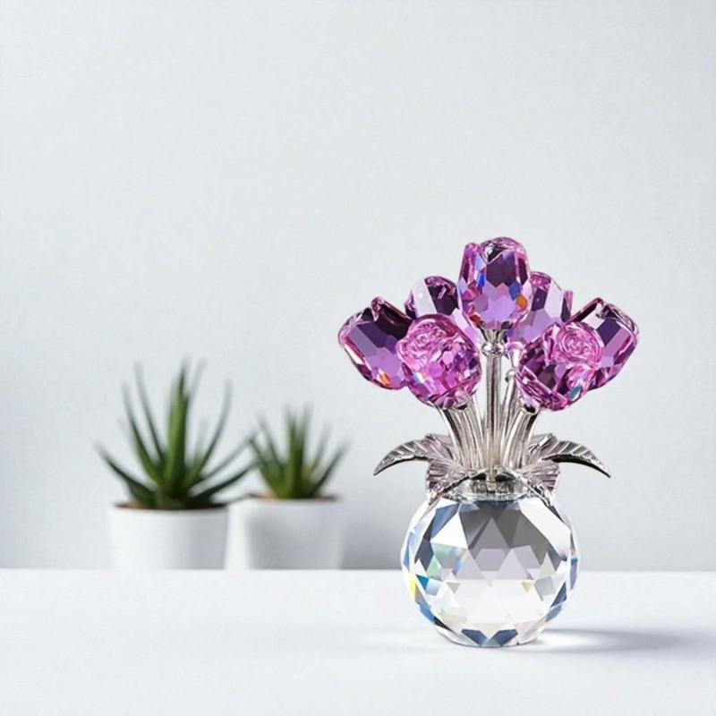 Radiante e atemporal como nunca, nossa Rosa de Cristal é a peça decorativa mais encantadora para elevar qualquer espaço. Com uma clareza cristalina requintada e um design de rosa realista, ela captura a beleza do amor eterno — tornando-se uma lembrança significativa para cada momento especial.