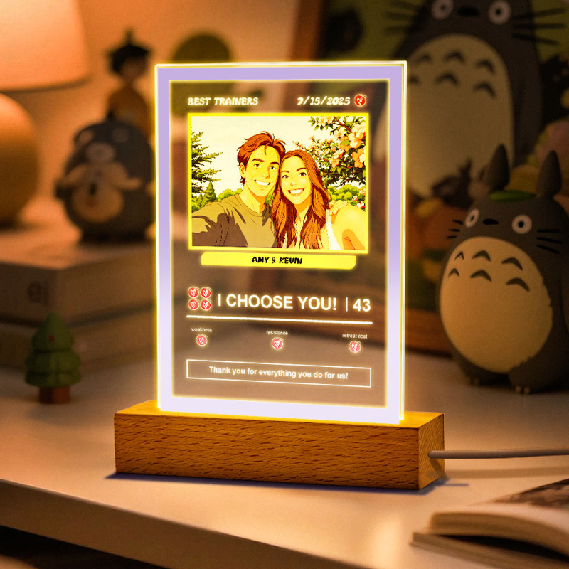 Esta Luz Noturna Personalizada em Acrílico com Cartão Poke é o presente romântico perfeito. Personalize-a com sua própria foto e texto para criar uma lembrança única. Ideal para adicionar um toque aconchegante a qualquer ambiente, é uma maneira charmosa de demonstrar seu amor e fazer memórias especiais perdurarem.