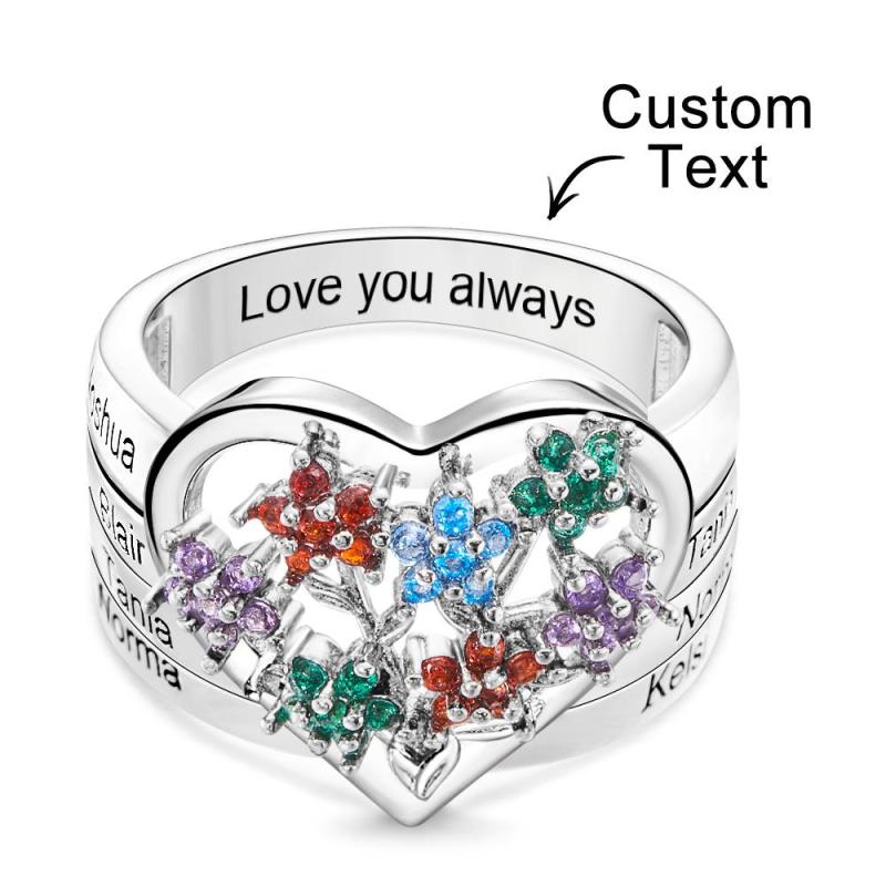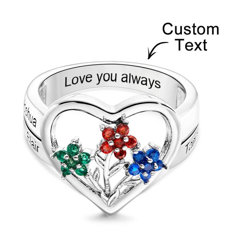 Anéis Gravados Com Pedra De Nascimento Personalizados, Flores Criativas, Presentes De Prata