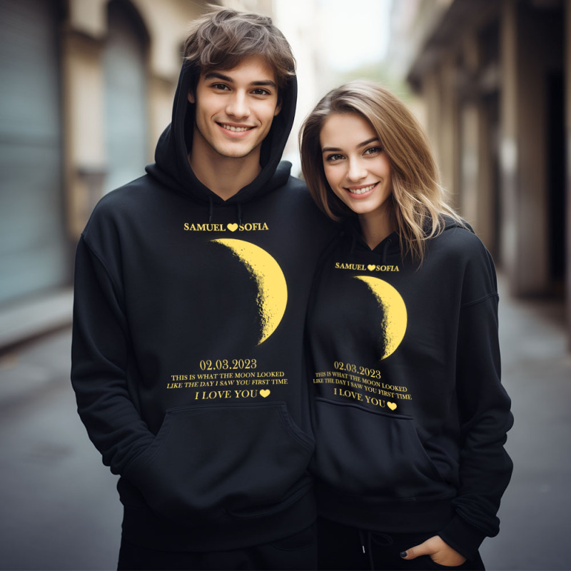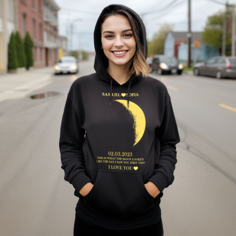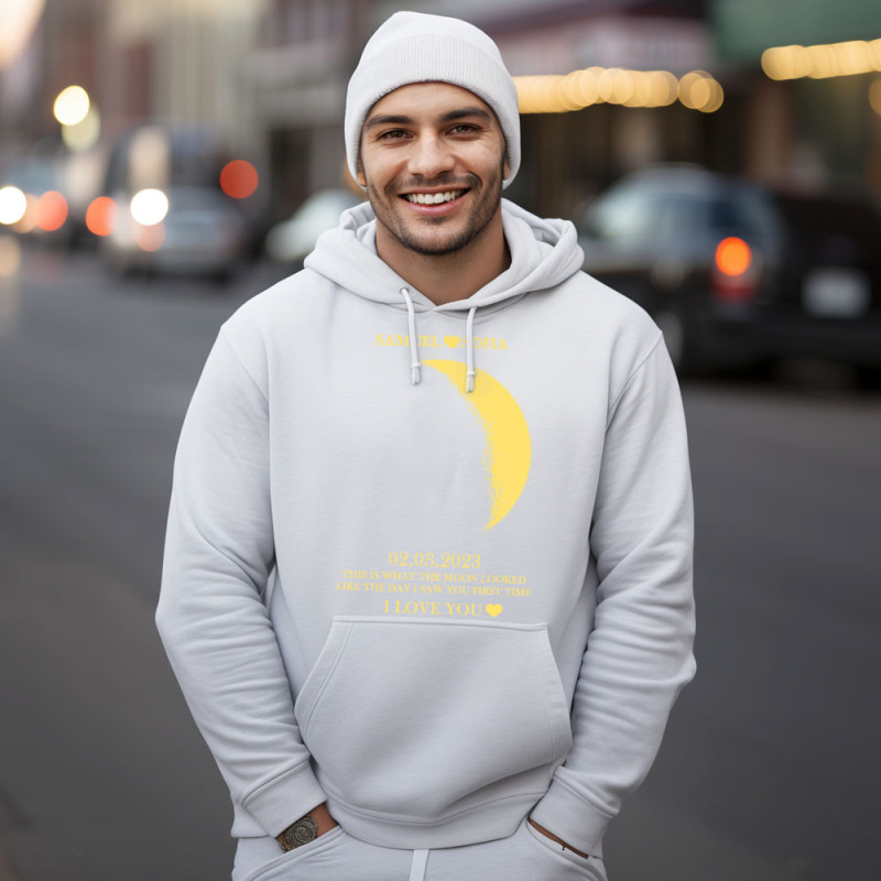 Design detalhado: A verdadeira fase da lua (feita à mão só para você) Capuz confortável, bolso canguru dividido, o cordão pode ser facilmente ajustado.