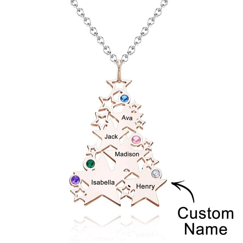 Presentes De Árvore De Natal Com Estrela De Colar De Pedra De Aniversário Gravada Personalizada