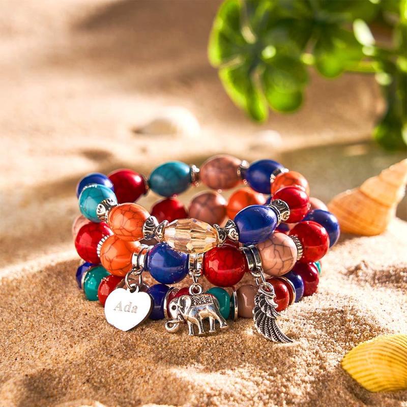 Pulseira Gravada Personalizada Estilo Bohemia Praia Presentes Retrô