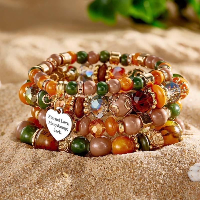 Pulseira Gravada Personalizada Estilo Bohemia Presente Requintado Para Menina