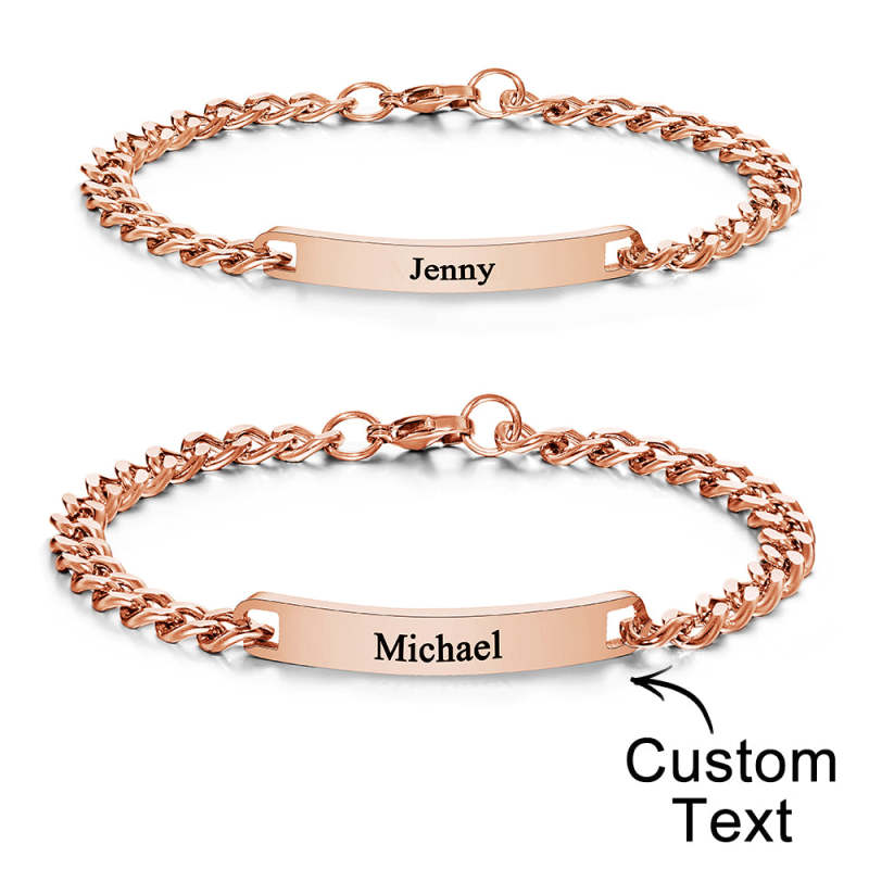 Nossas pulseiras para casais são feitas de aço inoxidável de alta qualidade, o que significa que não são apenas bonitas, mas também muito duráveis. O que é ainda mais especial é que oferecemos serviços de gravação personalizados. Você pode optar por gravar na pulseira o seu nome e o do seu parceiro, um aniversário, um segredinho um do outro ou até mesmo uma frase de amor que só vocês dois possam entender. Este tipo de personalização torna cada pulseira única, assim como o seu relacionamento.