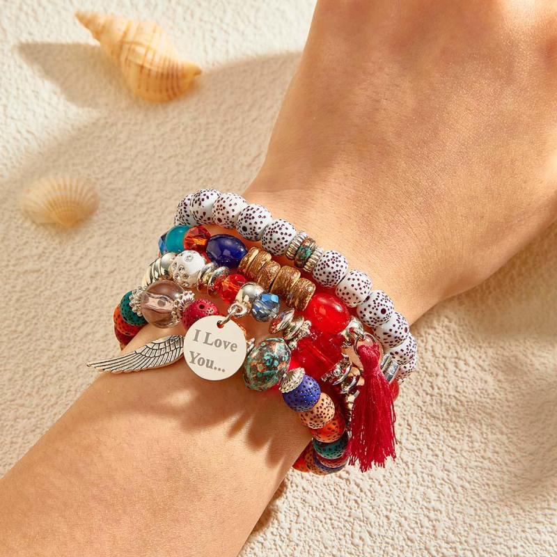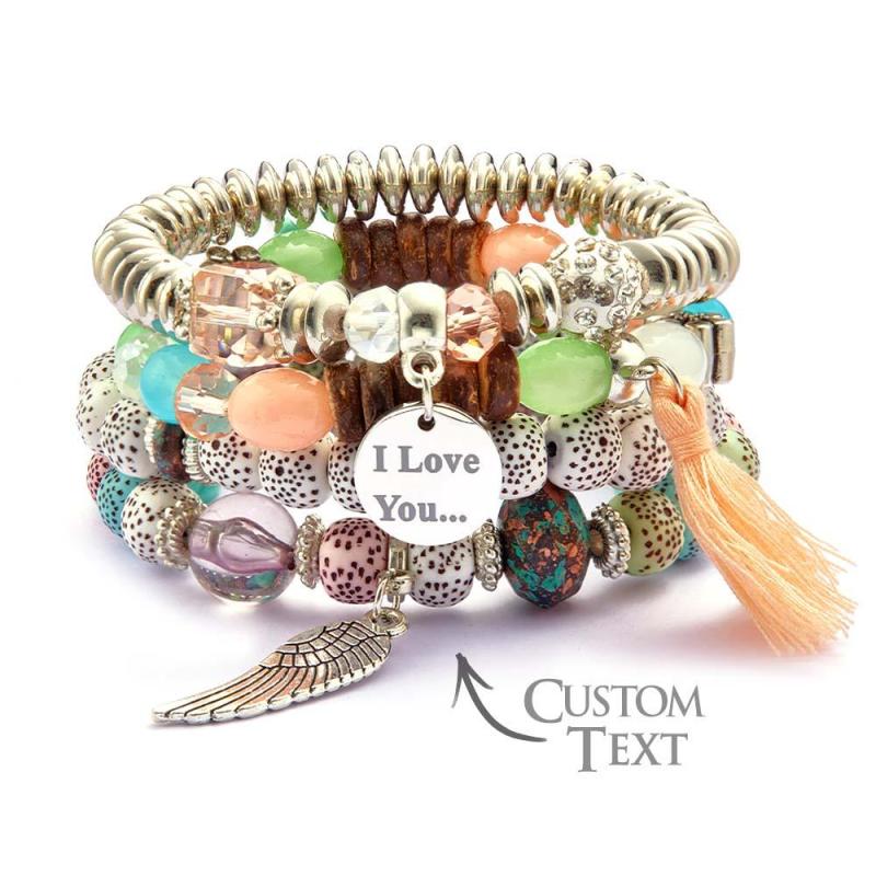 Pulseiras Gravadas Personalizadas Estilo Boêmia Presentes De Contas Para Meninas