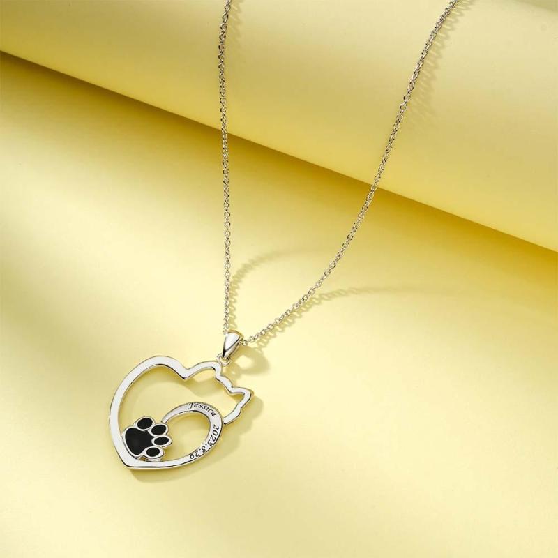 Colar De Contorno De Gato Gravado Personalizado Com Decoração De Pata De Animal De Estimação Colar De Zircão Presentes Para Ela