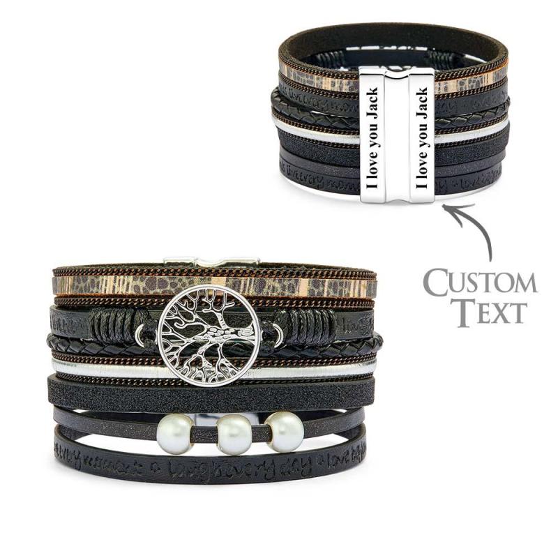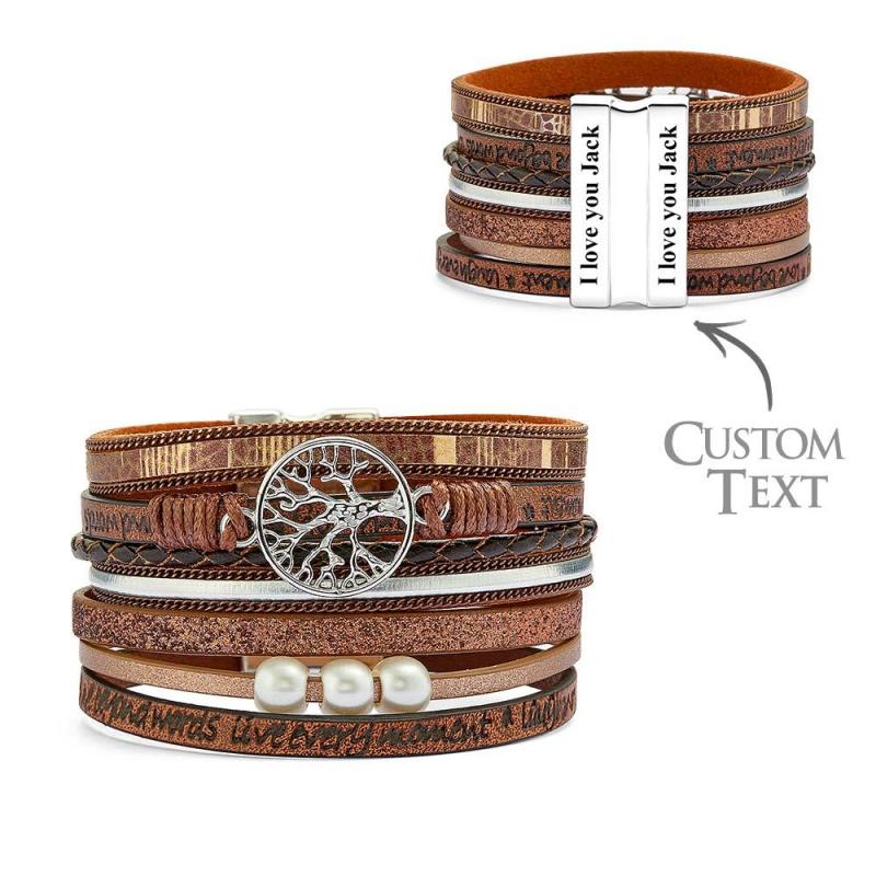 Pulseiras De Couro Inspiradas Na Árvore Da Vida Gravadas Personalizadas Para Mulheres