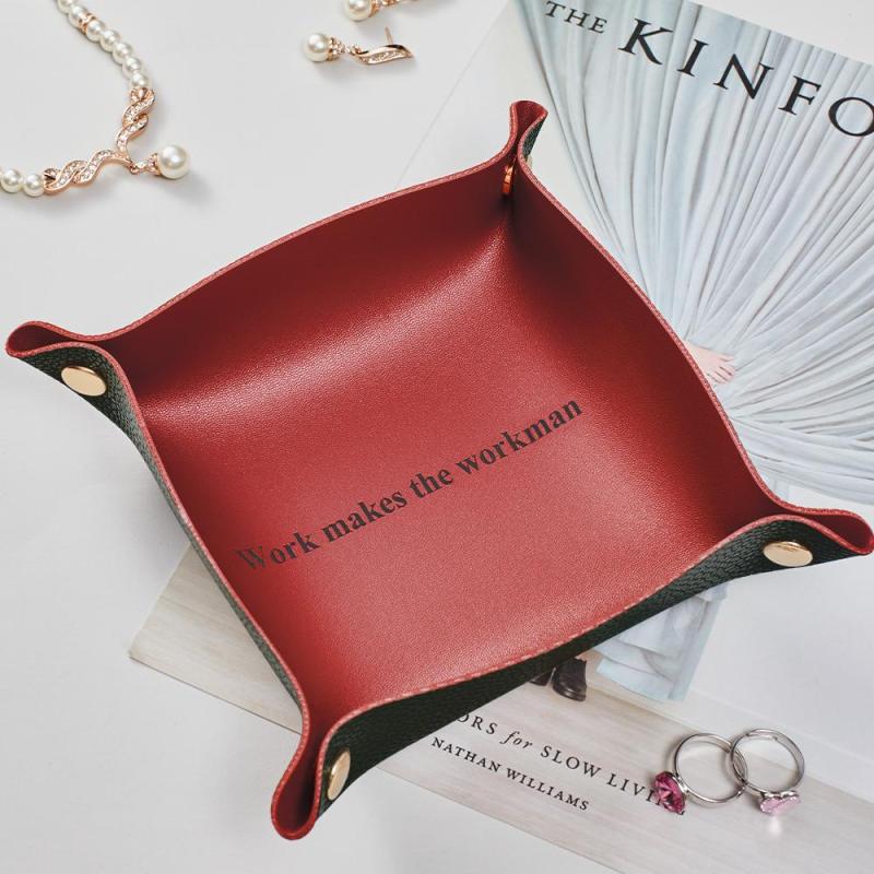 Hoje, a bandeja para joias é uma das mais vendidas no mercado de marroquinaria. Esta bandeja de armazenamento linda e minimalista é perfeita para acessórios de mesa, sua mesa de entrada ou armazenamento de joias! Feito de couro PU. Um excelente presente de boas-vindas ou presente de Natal.