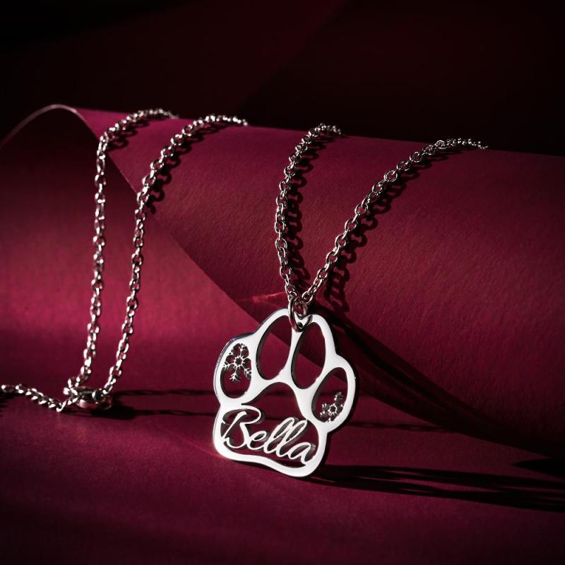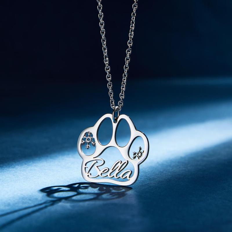 Colar gravado personalizado com garra de cachorro como presente para ela. A aparência deste colar é uma linda pata de cachorro. Você pode fazer gravuras personalizadas nesta pata de cachorro. Este colar tem três cores: ouro, prata e ouro rosa. Você pode escolher uma cor que gostaria de dar a ela ou a alguns amigos que gostam de animais de estimação.
