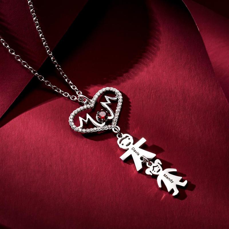 Colar Gravado Personalizado Mãe em forma de coração leva o colar de seu filho como presente para sua mãe. Este colar tem um pingente com o inglês da mãe. Ao mesmo tempo, há um menino e uma menina sob o pingente. Você pode personalizar o texto em meninos e meninas. Personalize esse colar para sua mãe. Tenho certeza que ela vai gostar muito.