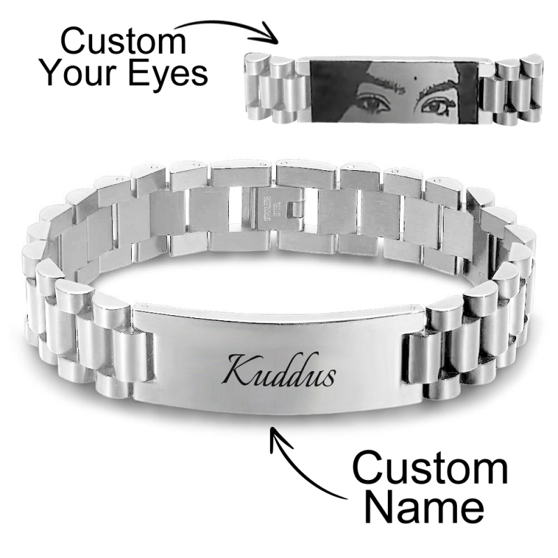 Capture a essência de suas conexões mais profundas com nossas pulseiras personalizadas gravadas, onde cada olhar conta uma história. Eleve o sentimentalismo de sua coleção de joias gravando os olhos de seus entes queridos nessas pulseiras requintadas. Cada peça é meticulosamente trabalhada para encapsular o olhar que fala muito, criando uma lembrança atemporal que celebra os laços de amor e parentesco de uma forma exclusivamente pessoal.