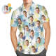 Camisa havaiana com rosto personalizado, camisa de praia engraçada com coqueiro multicolorido para homens