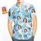 Camisa havaiana com rosto personalizado, flores brancas, presentes de aniversário personalizados