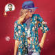 Coloque seu rosto em uma camisa havaiana de Natal com foto personalizada.