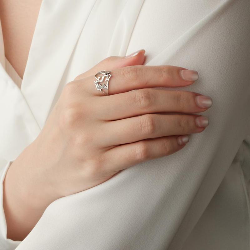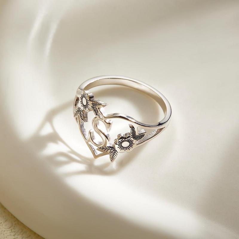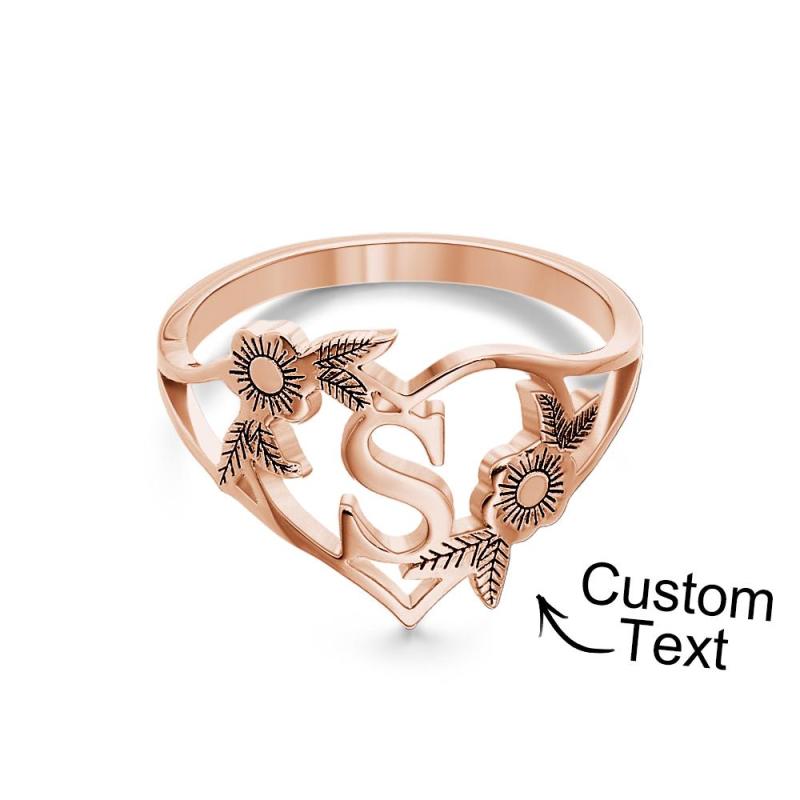 Iniciais Personalizadas Carta Coração E Flores Anéis Personalizado Delicado Carta Anel Presente Personalizado Para Ela